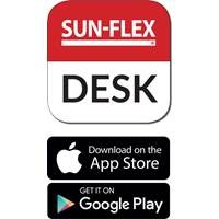 SUN-FLEX®INSTADESK VI kontrolleras enkelt med SUN-FLEX DESK app, som du laddar ner från App Store eller Google Play till din mobil. Med appen styr du din nya arbetsplats utefter individuella önskemål. Med den kan du justera höjder, ställa in påminnelsefunktioner, erhålla statistik etc., allt detta finns dessutom tillgängligt på nio olika språk. Du kan även sköta höjdjusteringen via den lättåtkomliga, intuitiva kontrollen vid bordskanten. Att arbeta ergonomiskt ska vara enkelt.