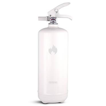 Den vita brandsläckaren smälter in och blir en del av inredningen. Brandsläckarna i serien Design by Housegard är avsedda för hemmamiljöer, där användaren kan förväntas veta var släckaren är placerad.