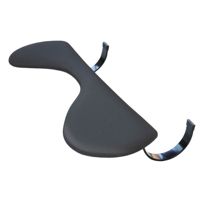 Stödet har en asymmetrisk form för bättre stöd vid vinklad armställning. Ställbara bågfästen för mitt- eller sidoplacering. Passar därför även på bord med maguttag och i vinkeln på ett L-format bord.