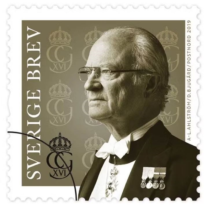 Det är tradition att ha kungens porträtt på frimärken för brev inom Sverige.