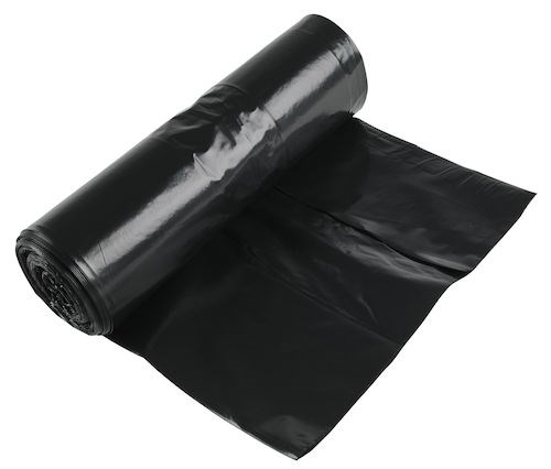 Svarta sopsäckar av tålig LD-polyeten på rulle. Säckarna är ett bra miljöalternativ eftersom de är gjorda av returplast.