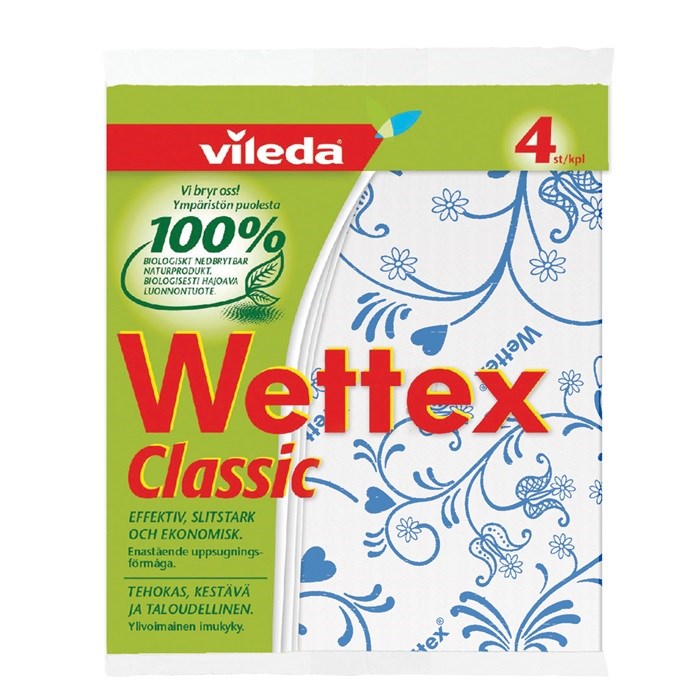 Wettex svampduk är en ren naturprodukt och kan komposteras. Miljövänliga Wettex består till 100 % av naturmaterial.