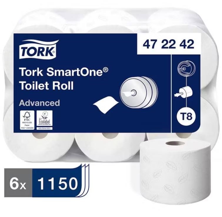 Tork Smartone Mjukt Toalettpapper - T8. Matar ut ett hygieniskt ark i taget. Lämplig för tolettutrymmen med en hög besöksfrekvens. Pappret löses snabbt upp som minskar risken för dyra stopp i toaletten.