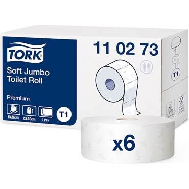 Toapapper Tork Jumbo Premium  T1  är ett vitt 2-lagers toalettpapper av mycket god kvalitet. Detta toapapper passar perfekt in i miljöer med hög besöksfrekvens..