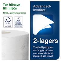 Toapapper Tork Mini Jumbo Advancei är ett vitt 2-lagers toalettpapper av god kvalitet. Detta toapapper passar perfekt in i miljöer med mycket besökare eller människor i omlopp, ex. inom vård eller på kontor.