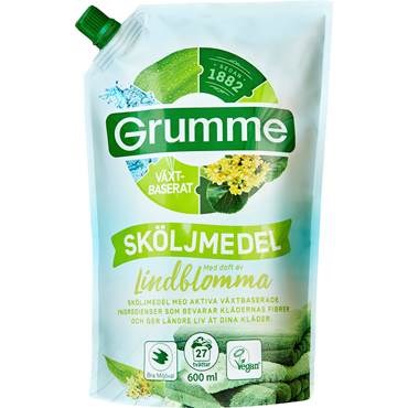Sköljmedel Grumme Lindblomma är ett vegetabilskt sköljmedel med fräsch doft av Lindblomma är effektivt och skonsamt mot miljön. Varje liten del räknas och ditt val gör skillnad. Grumme sköljmedel kommer i en klimatsmart påse med skruvkork som förbrukar mindre plast än en flaska och ger effektivare transporter.