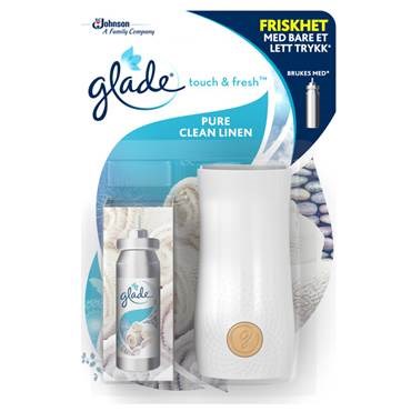 Luftfräschare Glade Touch & Fresh Clean Linen Hold. Fräscha upp luften med bara ett tryck av Glade Touch & Fresh rumsspray.