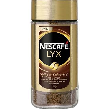 Frystorkat kaffe. Nescafé Lyx har vi blandat Arabicabönor med en handfull robustabönor för att få en fyllig och mjukt avrundad smak. Därefter rostar vi bönorna långsamt gyllene för att lyfta fram den milda karamellsmaken och ta fram den unika, sofistikerade aromen för vårt snabbkaffe.