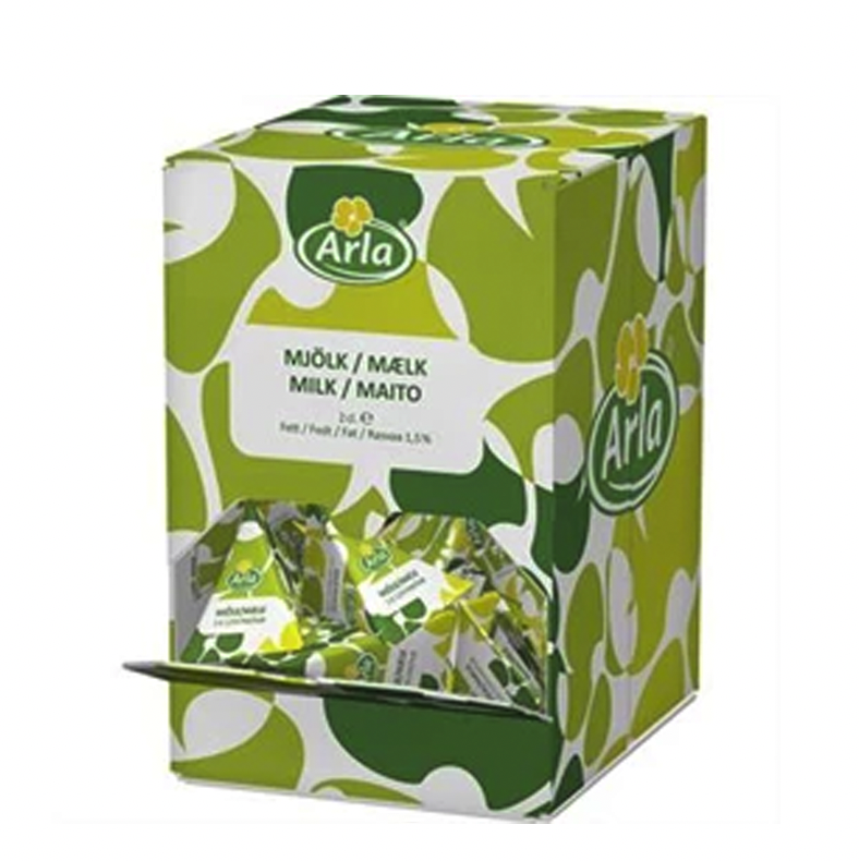 Mjölk á 2 cl tetra portionsförpackning. Passar alla tillfällen då du vill ha mjölk i ditt kaffe eller te. Nu får du dessutom portionsförpackningarna i en designad storförpackning som du kan ställa ut som den är.