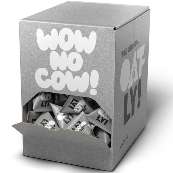 Populär havredryck från Oatly, här i en förpackning om 100 pyramidformade portionsförpackningar för kaffe eller te. Nu kan dina gäster byta ut mjölken mot ett eget paket fyllig havredryck. För alla som gillar mjölk i kaffet, men som inte vill eller kan dricka traditionell mjölk. Kommer i en praktisk displaykartong. Kan förvaras i rumstemperatur i flera månader utan att förlora sin rika gräddighet. Ingen mjölk och ingen soja.