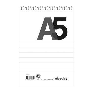 Spiralblock Niceday är ett anteckningsblock av 60 gram vitt papper. Spiralbundet i överkant.