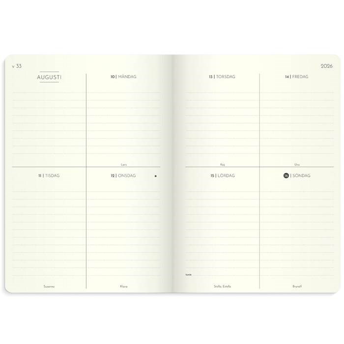 Kalender Weekly Deluxe 2025 B5 från Burde. Det här är kalendern för dig som älskar både planering och god design. Tack vare det större formatet har Weekly Deluxe en luftig layout, stilren med veckoindelning och lyxiga detaljer. Eller vad sägs om omslag i mjukt konstläder och smakfull silverprägling? Snyggare planering får man leta efter!