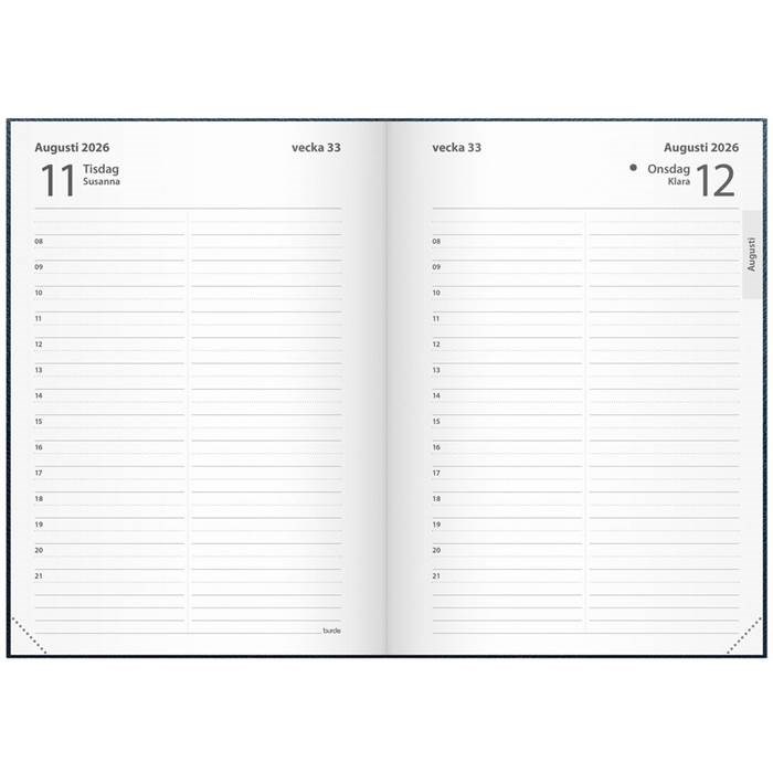 Kalender Liten Dagbok. En dag per sida, timindelad 8-21. Årsplaner för innevarande och följande år.