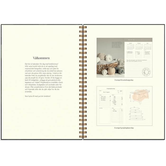 Kalender Lantdrömmar i A5-format från Burde. Inspireras och förverkliga dina drömmar samtidigt som du håller koll på din planering. Inlagan har cremefärgat papper och det vackert illustrerade omslaget är som en dröm i sig. Månadsöversikt varje kvartal med checklista och anteckningsyta.