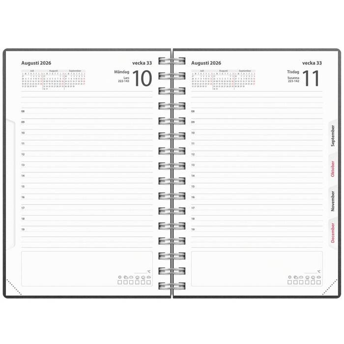Kalender - Dagboken med en dag per sida och timindelad 8-19 ger mycket skrivutrymme per dag och timme.