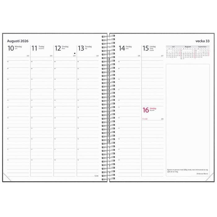 Noteringskalendern refill, A5-format. En kalender med vartannat uppslag veckokalender och vartannat anteckningssidor.
