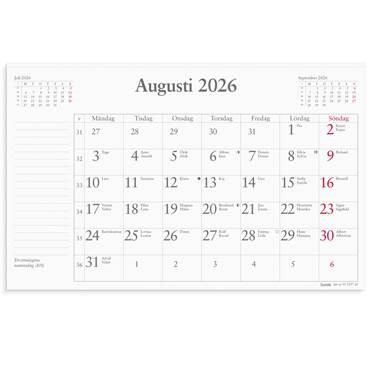 Kalender Månadsblock med en månad per sida med namnsdagar och med plats för anteckningar.