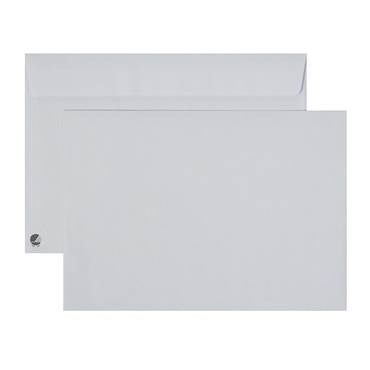 Vita kuvert med heltäckande grått innertryck. Självhäftande klaff med täckremsa.