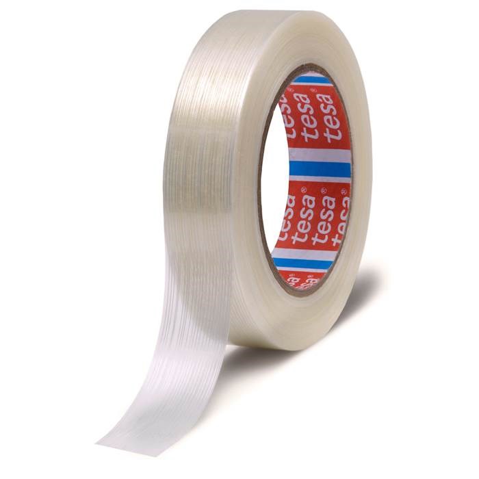 Glasfiberarmerad bandningstejp Tesa av transparent polypropylen (PP) förstärkt med längsgående glasfibertrådar.