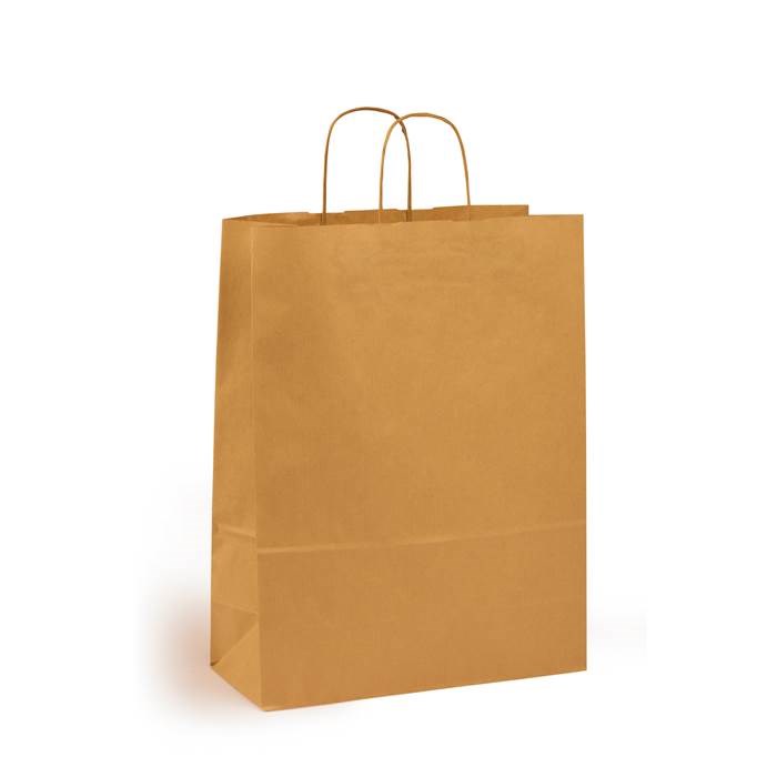 Sober papperskasse M med handtag av tvinnat papper. Bärkassarna har en extra förstärkt botten och är högkvalitativa.