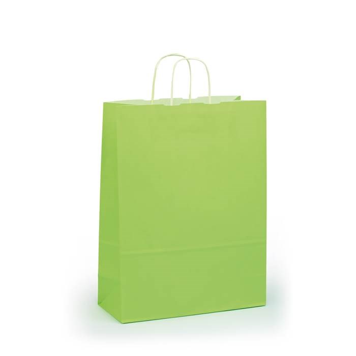 Sober papperskasse M med handtag av tvinnat papper. Bärkassarna har en extra förstärkt botten och är högkvalitativa.