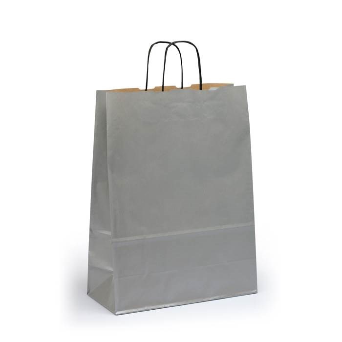 Sober papperskasse M med handtag av tvinnat papper. Bärkassarna har en extra förstärkt botten och är högkvalitativa.