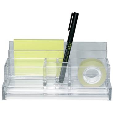 Akryl penn- och blockställ av transparent plast med nio fack för pennor, brev, gem etc.