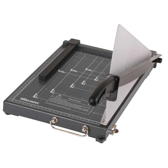 Transparent fast knivskydd för hög säkerhet. Skärbord markerat med skalor i cm, tum och DIN format för att enkelt skära pappret exakt. Integrerat bärhandtag för enkel förflyttning.