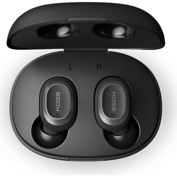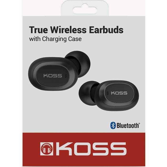 Hörlur KOSS True Wireless 250i. TWS250i Hörlur In-Ear True Wireless Mic. KOSS TWS250i True Wireless hörlur med laddningsfodral, USB-C-kabel och silikonproppar (små, medelstora, stora).