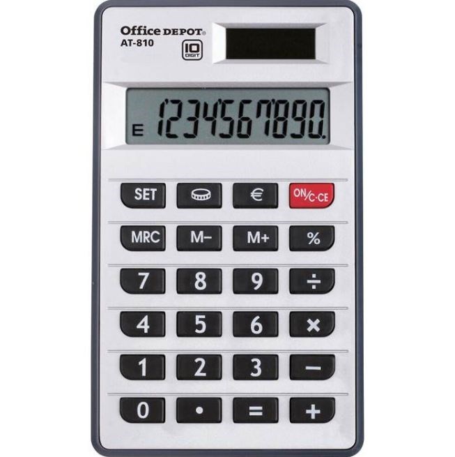 10 siffrig display har denna lättanvända miniräknaren Office Depot AT-810.
